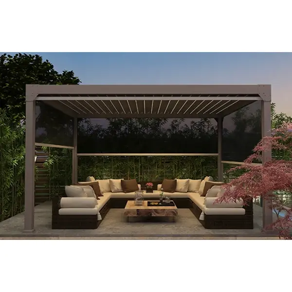 Ως κατασκευαστής με έδρα την Κίνα που ειδικεύεται σε έξυπνες εγκαταστάσεις εξωτερικού χώρου, έχουμε κάνει πολλαπλές αναβαθμίσεις στην ασφάλεια και τον έλεγχο του ηλεκτρικού ανασυρόμενου κιόσκι μας. Το κιόσκι είναι εξοπλισμένο με λειτουργίες τηλεχειρισμού και χειροκίνητου ελέγχου, επιτρέποντας τη λειτουργία έκτακτης ανάγκης σε περίπτωση διακοπής ρεύματος. Διαθέτει επίσης αυτόματη προστασία ορίων σε ισχυρούς ανέμους, εξασφαλίζοντας τόσο άνετη λειτουργία όσο και ασφάλεια, εξασφαλίζοντας πλήρως την εμπειρία του χρήστη σε εξωτερικούς χώρους. Επιπλέον, ως αξιόπιστος προμηθευτής έξυπνων κιόσκια εξωτερικού χώρου, μπορούμε να προσαρμόσουμε και να ενσωματώσουμε διάφορα λειτουργικά αξεσουάρ, όπως φωτιστικά και ρολά σύμφωνα με τις ανάγκες των πελατών, διασφαλίζοντας ότι το προϊόν ταιριάζει απόλυτα με τις υπαίθριες ανάγκες αναψυχής σε βίλες, εμπορικές εγκαταστάσεις και άλλα διαφορετικά σενάρια.
